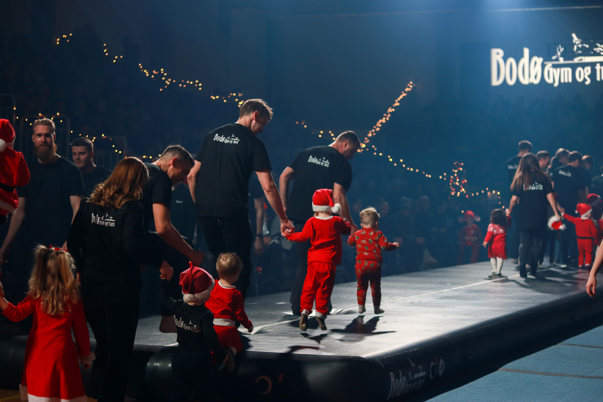 Kler seg ut som smånisser. Alle barna har med seg en voksen hver på gulvet som følger de. Foreldre har på seg sort bukse og får låne sort Bodø gym og turn T-skjorte av klubben.